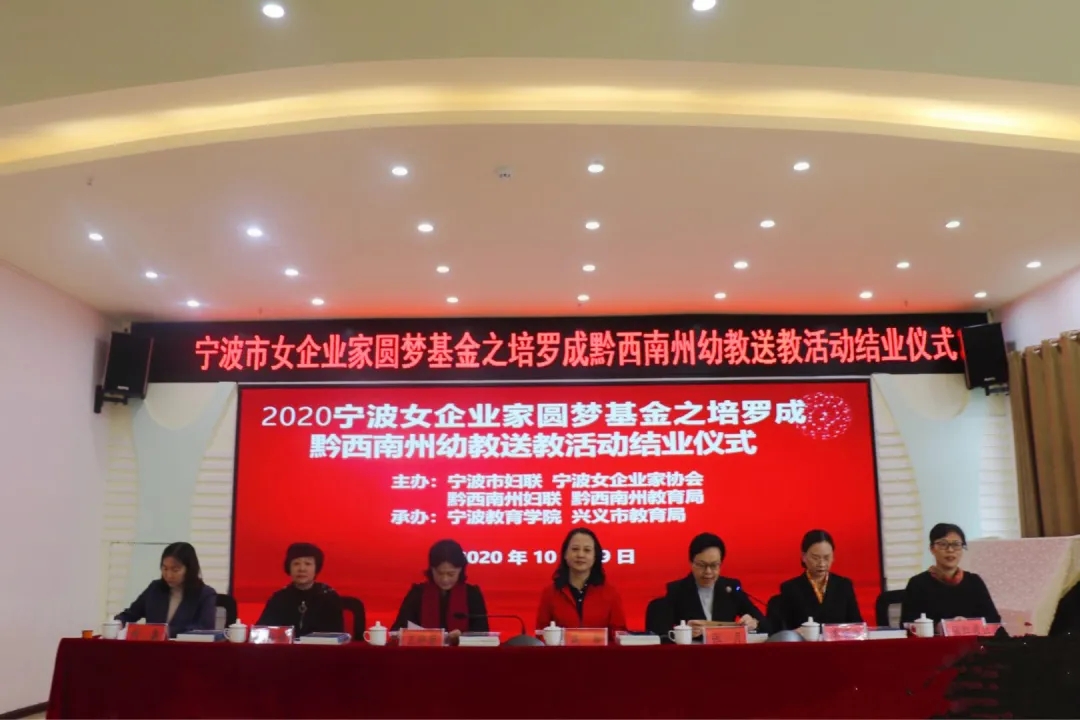10月29日下午,寧波市女企業(yè)家圓夢基金之培羅成黔西南州幼教送教活動結(jié)業(yè)儀式在灑金南興第一幼兒園舉行。寧波市女企業(yè)家協(xié)會會長高屏,寧波市女企業(yè)家協(xié)會副會長、培羅成集團副總經(jīng)理李堅波,黔西南州婦聯(lián)黨組書記、主席王婷菊等出席并講話。寧波市婦聯(lián)黨組成員、副主席張月主持結(jié)業(yè)儀式。